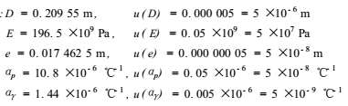 式中:qsi*i校準點在標準體積管處的實際流量,L/min;qsig*i校準點在標準體積管處名義流量的平均值,L/min;D標準體積管的內(nèi)徑,mm;E標準體積管材料的彈性模量,Pa;e標準體積管的壁厚,mm;psi*i校準點在標準體積管處的流體表壓力的平均值,Pa;αp標準體積管的線膨脹數(shù),℃^-1;tsi*i校準點在標準體積管處的流體溫度的平均值,℃;αr體積管測量桿的線膨脹系數(shù),℃^-1;tri*i校準點在體積管測量桿處的溫度,℃。