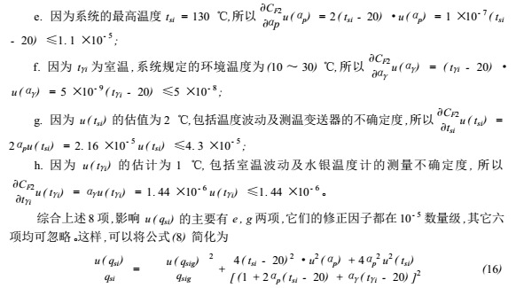 這樣,已修正的標準體積管流量的合成相對標準不確定度可用公式(8)計算