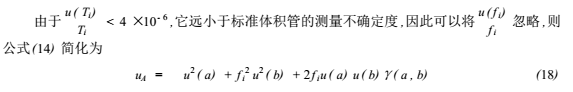 式中:u( V )標準體積管體積校準的標準不確定度;u(Ti)標準體積管測量時間的標準不確定度。